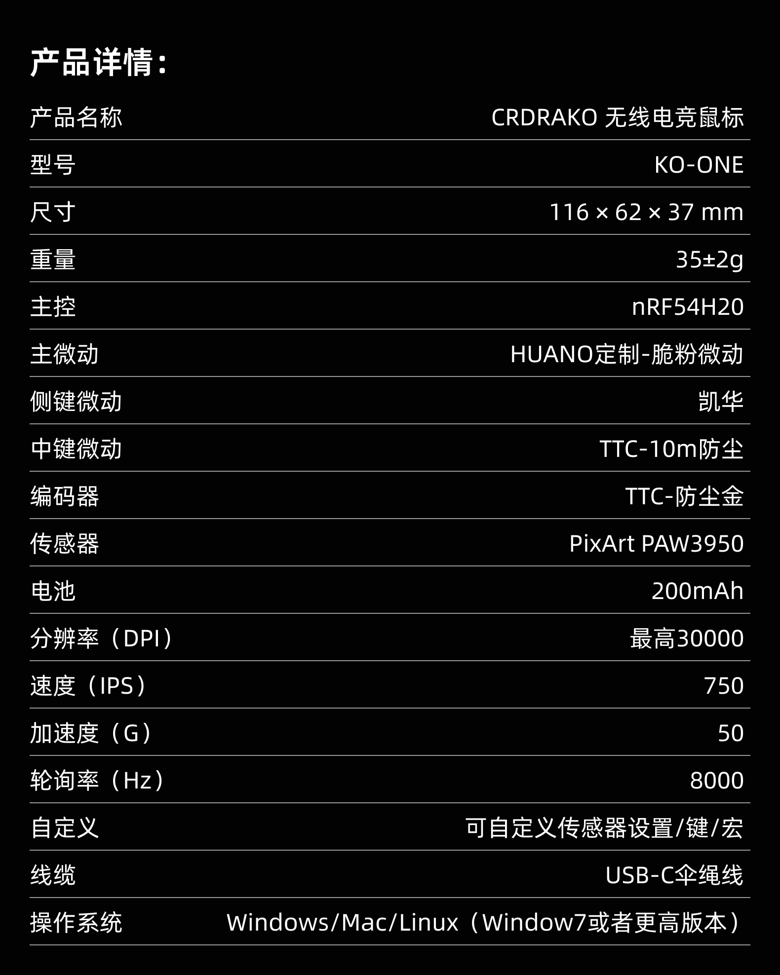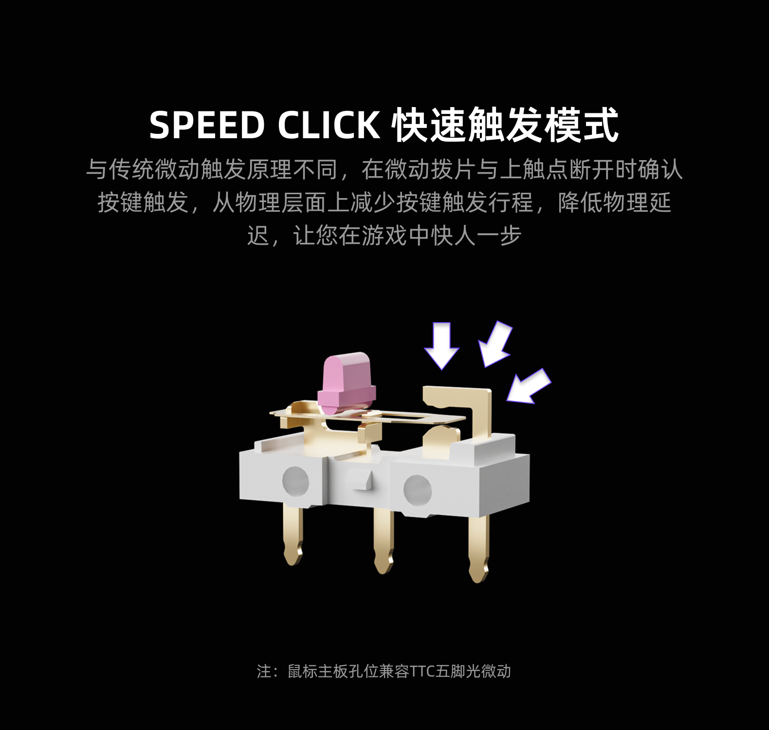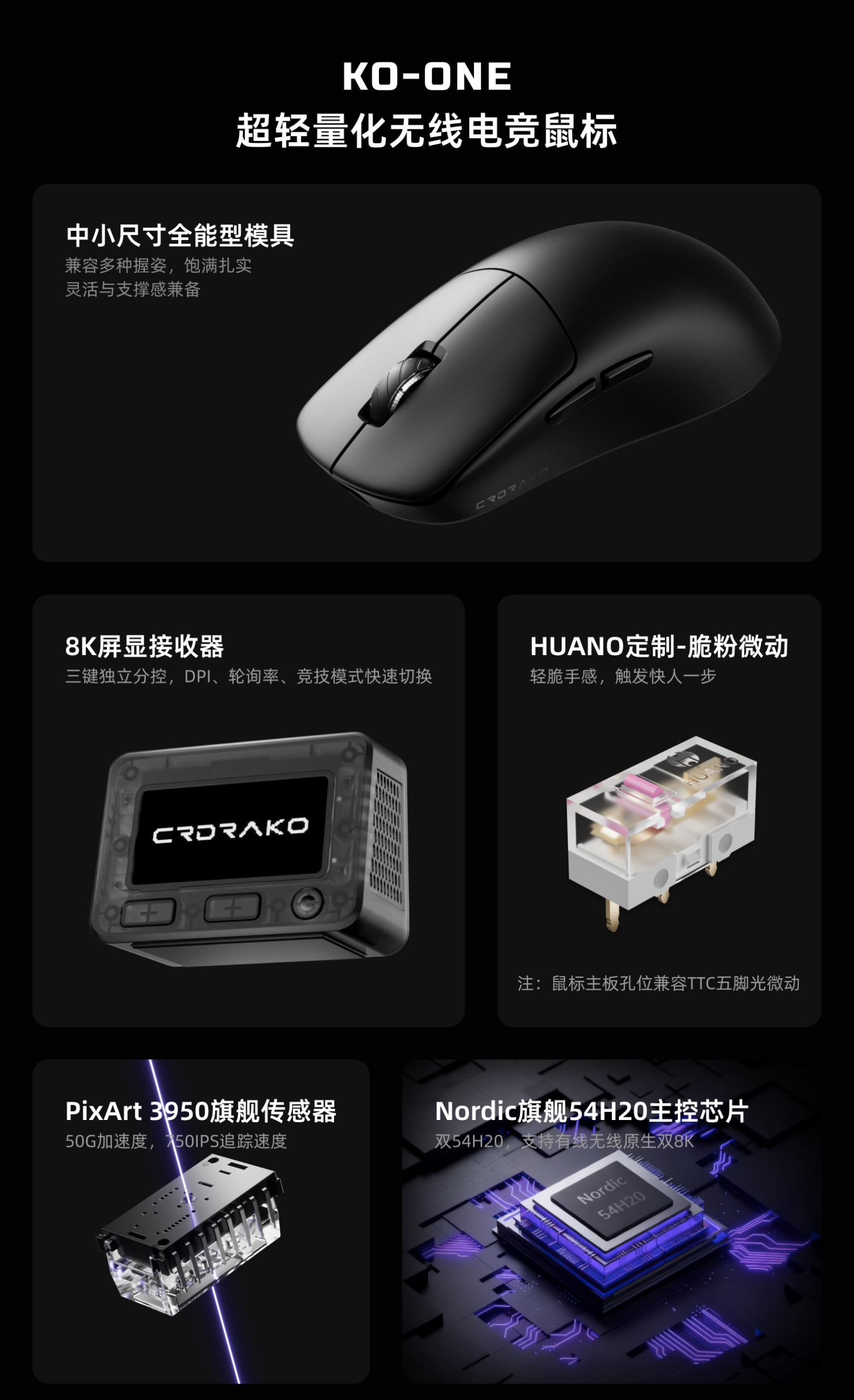 • 微动:HUANO定制-脆粉微动(主键)、凯华(侧键)、TTC-10m防尘(中键)
